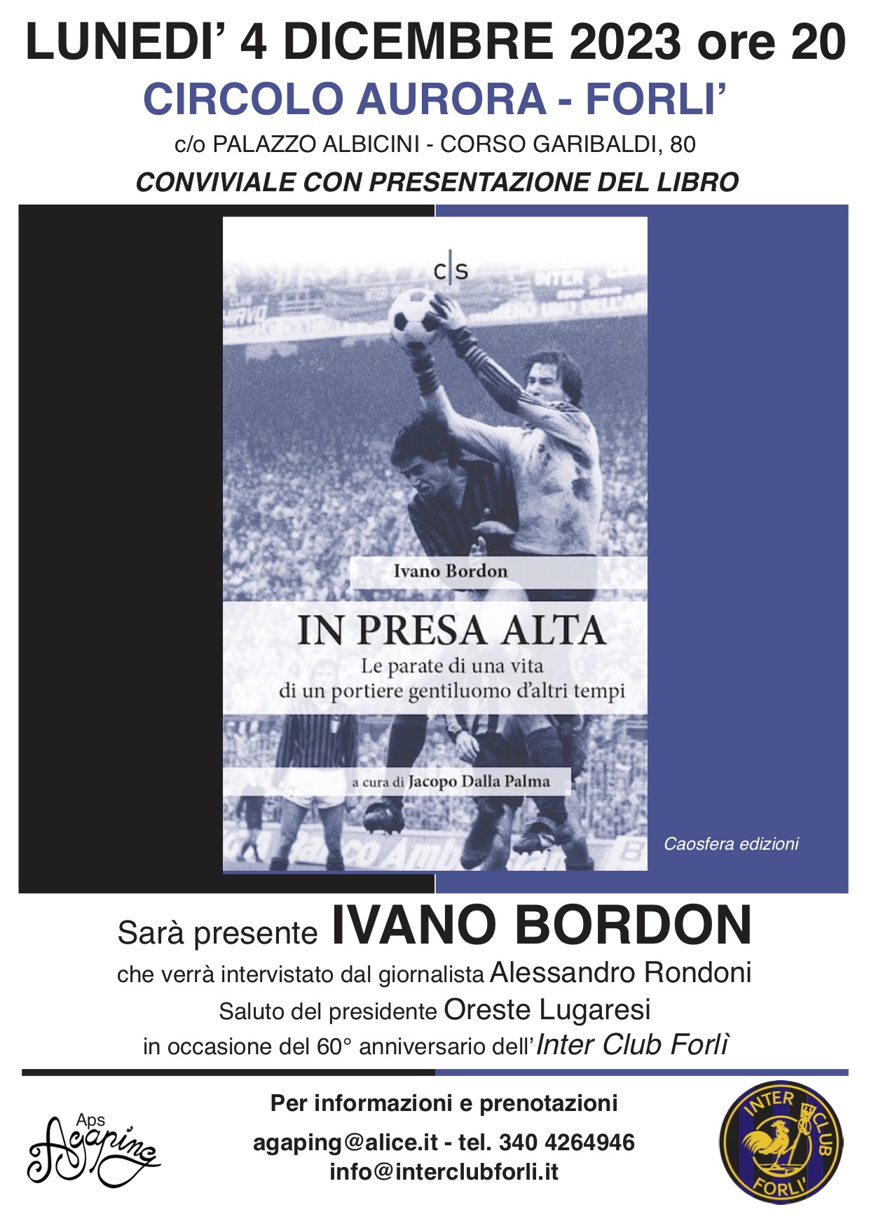 Una serata piena di sorprese e di ospiti ha fatto da cornice al Circolo Aurora di Palazzo Albicini alla presentazione del libro sul portiere dell’Inter e della Nazionale di calcio...