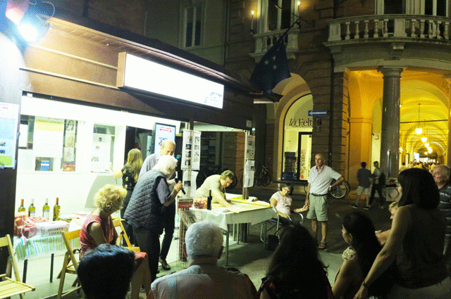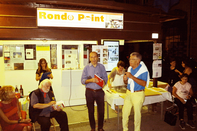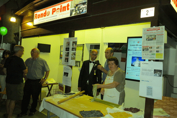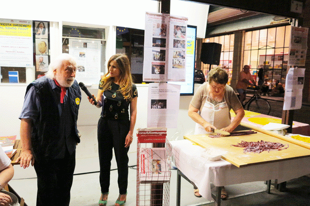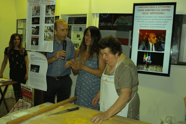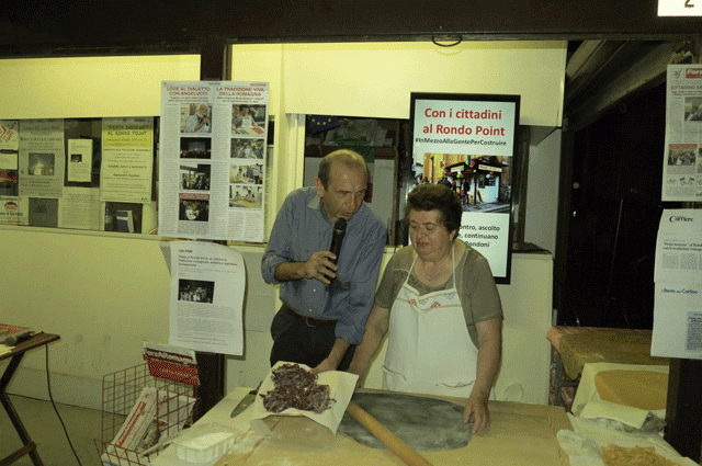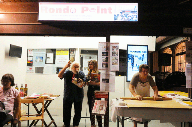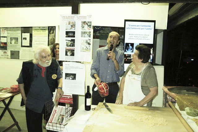Decima edizione della "Festa insieme" al Rondo Point il 4 luglio 2018. Solidarietà e omaggio alla Romagna con il dialetto di Aurelio Angelucci, in arte "Tugnaz" , e la tagliatella della sfoglina Maria Senzani. E' intervenuto Rondoni che ha dialogato con i cittadini e ha invitato a degustare i prodotti della tradizione gastronomica romagnola.