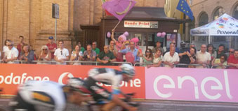 Anche il Rondo Point si è colorato di rosa per festeggiare il passaggio in città della 12a tappa del Giro d’Italia, quest’anno giunto alla centesima edizione. Fra palloncini, maglie e striscioni il punto di incontro, ascolto e informazione ha partecipato alla festa che per l’intera mattinata del 18 maggio ha animato piazza Saffi, dove migliaia di persone si sono riversate per vedere sfilare i corridori prima della partenza. Festa anche l’11 giugno per l’arrivo della 3a tappa del Giro d’Italia Under 23 che, partita da Bagnara di Romagna, è giunta in città dopo un percorso impegnativo attraverso le colline romagnole. Nell’occasione Rondoni ha salutato il giornalista Marino Bartoletti.