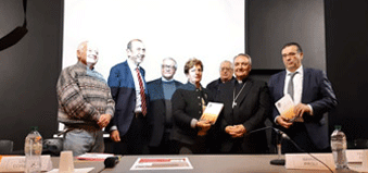 (Da sin.) Francesco Ognibene, Alessandro Rondoni, mons. Giovanni Mosciatti, Giovanni Rossi, Vincenzo Corrado