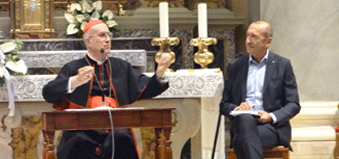 Il card. Tarcisio Bertone, segretario di Stato emerito della Santa Sede, è stato a Forlì per presentare il suo libro “I miei papi” (ed. Elledici) nella chiesa del Suffragio, invitato dal rettore, don Paolo Giuliani, già suo allievo alla Pontificia Università Lateranense, che ha introdotto l’incontro il 20 ottobre scorso. Il cardinale è stato intervistato dal giornalista Alessandro Rondoni e ha raccontato episodi e aneddoti, anche inediti, sui sette papi che ha conosciuto, da Pio XII a Francesco, e sulla collaborazione che ha avuto con cinque di essi. Bertone era già stato a Forlì nel 2007 quando, il primo maggio, partecipò insieme ad altre personalità civili e religiose all’intitolazione della piazza Papa Giovanni Paolo II davanti al Duomo. La richiesta di dedicare un luogo centrale della città a papa Wojtyla era stata avanzata all’Amministrazione comunale di Forlì, all’indomani della morte del Pontefice, da Alessandro Rondoni, allora direttore de “il Momento”, per evidenziare il legame della città con il Papa, che lo aveva conosciuto anche grazie all’opera di don Francesco Ricci con il Centro Studi Europa orientale (Cseo).