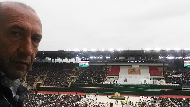 Alessandro Rondoni ha seguito la visita di Papa Francesco in regione domenica 1 ottobre. È stato a Cesena, in piazza del Popolo, dove erano presenti giornalisti, autorità civili, militari ed ecclesiali, politici, rappresentanti del mondo associazionistico ed economico, e una delegazione della Casa circondariale di Forlì. Ha seguito poi a Bologna, allo stadio Dall’Ara, la messa del Papa concelebrata anche dal vescovo di Forlì-Bertinoro, mons. Lino Pizzi, e da altri sacerdoti della diocesi. Rondoni, che in sala stampa ha seguito gli altri momenti della giornata, ha detto: «Papa Francesco è venuto dalle periferie per mostrarci una Chiesa in uscita, che ascolta i bisogni della gente e va incontro all’uomo. Il suo arrivo, in questo tempo di crisi, è un forte segno di speranza».