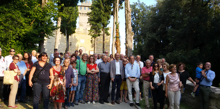 Il gruppo dei partecipanti sul terrazzo panoramico della Rocca delle Caminate