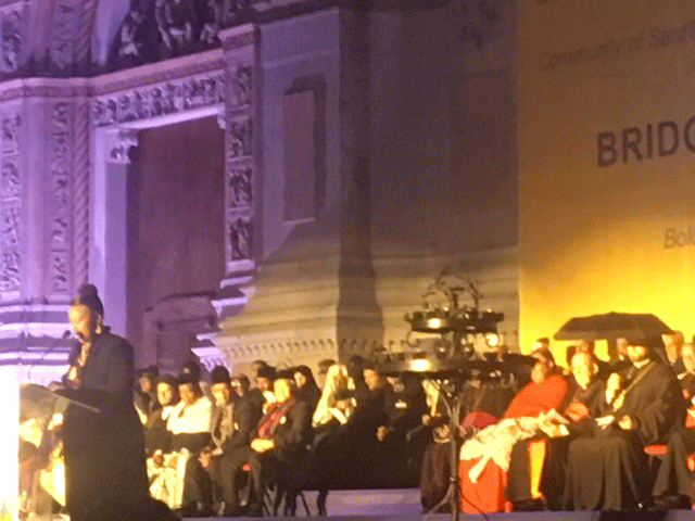«La pace non è conquistata una volta per sempre ma va costruita ogni giorno con un impegno che parte dalla disponibilità al cambiamento di sé, all’ascolto dell’altro e a fare comunità». Lo ha detto in diretta su Nettuno TV Rondoni commentando “Ponti di Pace”, l’incontro internazionale promosso a Bologna dal 14 al 16 ottobre da Chiesa di Bologna e Comunità di Sant’Egidio per il dialogo e l’amicizia tra popoli, religioni e culture. Tanti i convegni con leader di religioni, rappresentanti di istituzioni nazionali ed europee, e le testimonianze. «Occorre una politica comunitaria che sappia guidare i processi della globalizzazione, delle migrazioni, dell’integrazione, dei cambiamenti climatici, della custodia dell’ambiente e che combatta contro lo spreco delle risorse, comprese quelle alimentari» ha sottolineato Rondoni. Toccanti le testimonianze, come quella di Nour Essa, la ragazza profuga siriana che con il marito e i due figli è scappata dalla guerra attraverso i corridoi umanitari, è stata “salvata” e portata in Italia con la sua famiglia da Papa Francesco. E poi quella di Berenice King, figlia di Martin Luther King, che ha chiesto un mondo di pace senza violenze e discriminazioni, ricordando che tutti dobbiamo essere sognatori di pace. E pure quella del vescovo cinese Yoseph Shen Bin, che ha parlato dopo i recenti accordi tra la Cina e la Santa Sede in nome di un nuovo rapporto che anche in quel Paese sta avvenendo. «Vedere tanta gente insieme - ha proseguito Rondoni - una carovana di personaggi giunti da tutto il mondo con i colorati abiti e copricapi tradizionali, sentire parlare lingue diverse in giro per la città, pregare e dialogare in momenti ecumenici e interreligiosi, fa ben sperare, costruisce il futuro e rende evidente che gli uomini di fede sono uomini di pace. E tutto questo proprio nei giorni in cui si ricordava il 40° anniversario di elezione di Papa Giovanni Paolo II e veniva canonizzato Paolo VI». Tanti gli argomenti percorsi e, fra gli altri, l’ambiente, i corridoi umanitari, le migrazioni, l’unità dei cristiani, il Medioriente, il futuro di Sarajevo, i giovani e le differenze, la città nell’era globale, la solidarietà tra generazioni, le diseguaglianze della globalizzazione, i poveri e i deboli, la crisi dell’Europa, lo sviluppo economico e le eredità del ’68. La manifestazione si è conclusa con la preghiera comune in piazza Maggiore, con l’arcivescovo di Bologna, Matteo Zuppi, che insieme agli altri leader ha consegnato l’appello e acceso una fiaccola per la pace. I giovani del Coro dell’Antoniano e poi Gianni Morandi hanno cantato davanti alla gente, perché anche la musica è un messaggio di pace.
