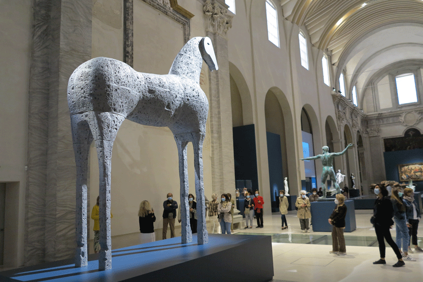 Nel rispetto delle norme di sicurezza anticovid e delle regole sul distanziamento sanitario, due gruppi di persone hanno partecipato insieme ad Alessandro Rondoni alla visita guidata, proposta l’1 ottobre dall’associazione Rondo Point e da “ForzARomagna”, alla grande mostra “Ulisse. L’arte e il mito” allestita ai Musei San Domenico di Forlì. L’esposizione, promossa dalla Fondazione Carisp in collaborazione con il Comune, dopo la chiusura forzata a causa della pandemia durante i mesi del lockdown è stata riaperta con rigorose misure di sicurezza dal 19 maggio fino al 31 ottobre. Circa 250 le opere esposte, dall’antichità al Novecento, dall’Ulisse di Sperlonga (I secolo d. C.) a quello di Arturo Martini, alle Muse di De Chirico e al cavallo statuario di Mimmo Paladino, esposto nello spazio suggestivo della chiesa di San Giacomo che ha accolto anche l’imponente relitto della nave greca di Gela. L’importanza della mostra è documentata anche dalla sua candidatura al Global Fine Art Awards per la categoria “Best Ancient”, in corsa con il British Museum di Londra, il Paul Getty di Los Angeles, il Metropolitan di New York, il Museu d’Arqueologia de Catalunya di Barcellona e il Louvre di Abu Dhabi.