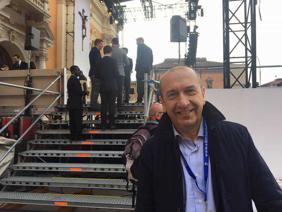 Alla messa celebrata da Francesco sul sagrato della Cattedrale carpigiana erano presenti anche 4.500 ammalati e disabili giunti da vari luoghi, tra cui un centinaio di pellegrini forlivesi arrivati con due pullman dell’Unitalsi. Dopo la messa e il saluto del vescovo di Carpi, mons. Francesco Cavina, il Papa ha recitato l’Angelus e ha benedetto le prime pietre di quattro nuovi edifici della diocesi di Carpi. Ha poi pranzato nel Seminario, ha visitato la Cattedrale e si è quindi recato a Mirandola, uno dei centri più colpiti dal sisma del 2012. Qui, nella piazza davanti al Duomo ancora inagibile per i danni, ha pronunciato un discorso alle popolazioni colpite dal terremoto. Si è poi trasferito nella parrocchia di S. Giacomo Roncole per deporre i fiori sulla stele realizzata dalla diocesi di Carpi in ricordo delle vittime.